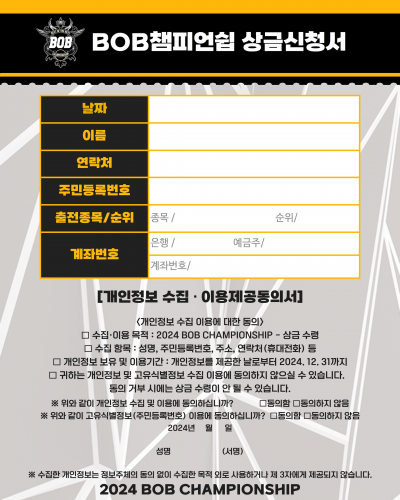 BOB챔피언쉽 상금 신청서