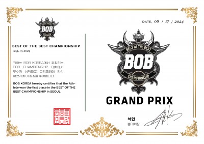 BOB 챔피언쉽 그랑프리 인증서