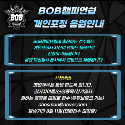 BOB챔피언쉽 개인포징 음원 신청방법